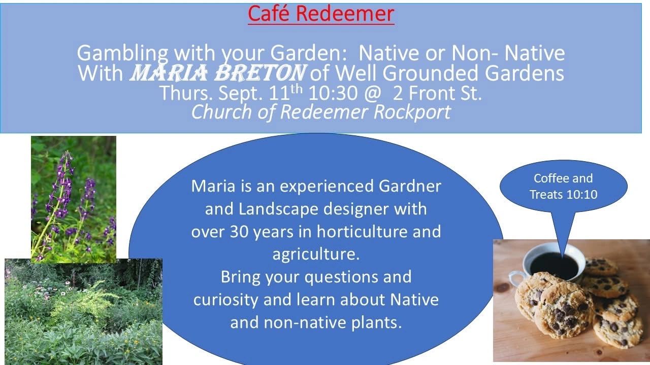 The new season of Cafe Redeemer, starting Thursday Sept 11th at 10:15.