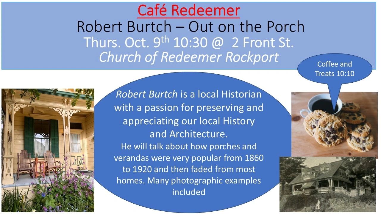 This should be an interesting and light hearted presentation about porches. When I talked to Robert about it all I could think of was that song “If the world had a Front Porch” …