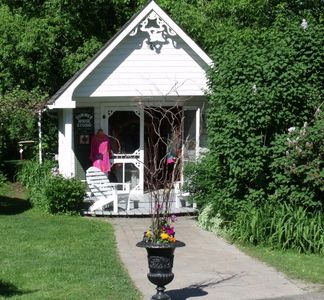 Silk screened clothing, hand painted clothing, floor cloths, table linens, twig furniture, workshops, in a beautiful setting overlooking the St. Lawrence River in Rockport, Ontario, Canada.
