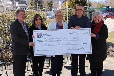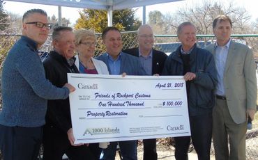 Under beautiful sunny skies, the Friends of Rockport Customs accepted a donation in the amount of $3,000 from the Gananoque Kinsmen Club for work on the restoration of the Rockport Customs Dock.